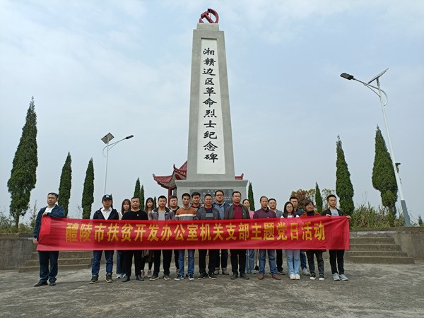 随后,全体干部前往湘赣边区革命烈士纪念碑,怀着无比虔诚的敬意,瞻仰了革命先烈,聆听了英雄事迹,向革命烈士三鞠躬,在庄严的革命烈士纪念碑前重温了入党誓词。