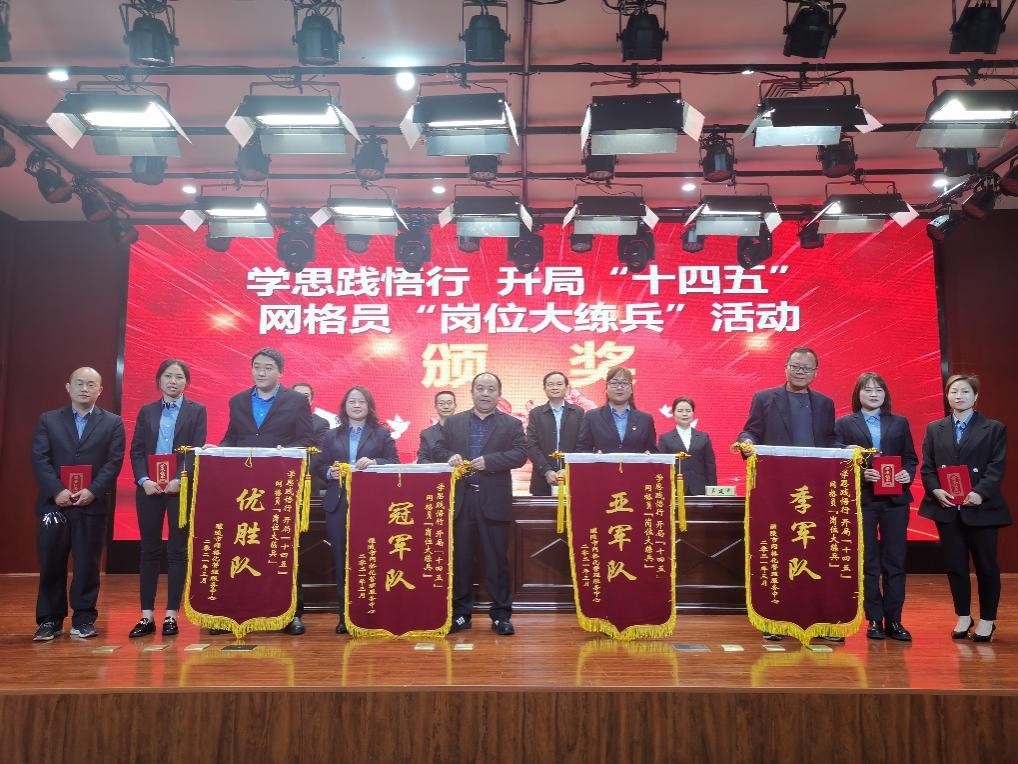 经过激烈角逐,最终国瓷长庆联合代表队荣获冠军、来龙门代表队荣获亚军、阳三石代表队荣获季军、仙岳山代表队荣获优胜奖,来龙门街道五里牌社区第七网格李权、长庆示范区清潭村第七网格廖金爱、仙岳山街道万宜村第二网格朱莎莎、阳三石街道立三村第三网格谢芝芝荣获“网格业务标兵”荣誉称号。