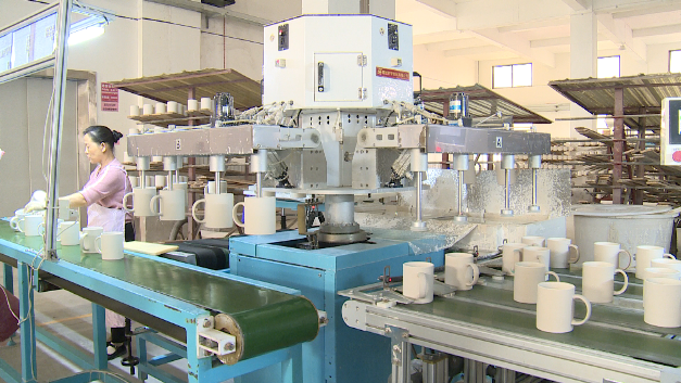 兰国飞是仙凤瓷业管理部的部长,他介绍:公司投入8000多万元,2019年下半年开始,对整个生产车间以及自动化生产设备升级改造,现在已经全部完成。原来每条生产线需要26人,现在只需16人,8条自动化生产线减少了100多人。同时,陶瓷日产量由原来的5万多件提高到了7万多件。从效率、人工成本,以及产品质量提升方面来讲,每年给公司带来效益大概在500万元以上,非常可观。