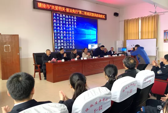 4月12日上午,由市关工委、市委政法委、市司法局、市教育局、团市委共同举办的醴陵市“关爱明天·普法先行”第二轮巡回宣讲活动在泗汾中学正式启动。市关工委主任刘跃峰,市委组织部副部长、老干局局长、市关工委副主任黎波,市教育局、泗汾镇、市关工委宣讲团及泗汾中学师生共计300人参加仪式。