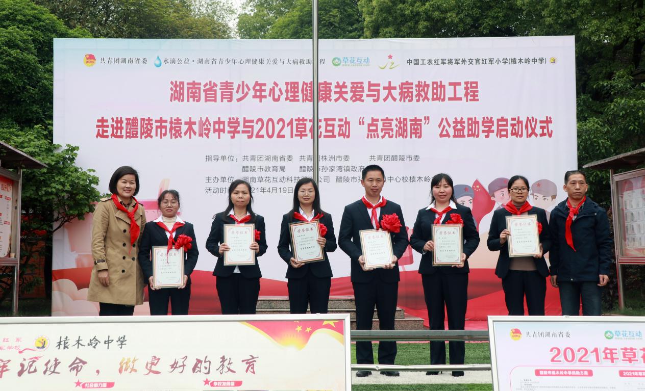 4月19日,共青团湖南省委、湖南省希望工程、湖南省青少年发展基金会和省湘雅二医院心理关爱、草花互动“点亮湖南”公益助学团队一行来到醴陵市榬木岭中学,启动2021草花互动“点亮湖南”公益助学仪式并开展心理健康护航活动。活动由共青团醴陵市委书记朱玉婷主持。