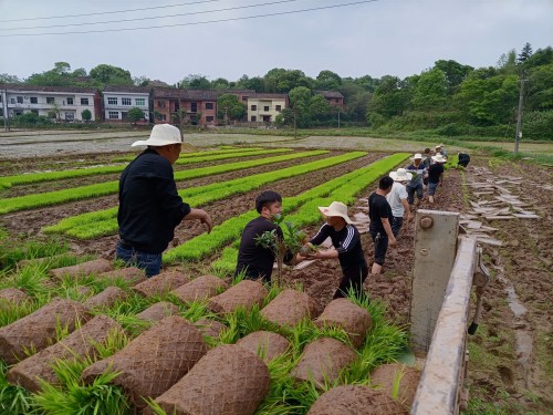 4月22日上午,市农机事务中心号召成立了中心党员志愿春耕服务队,帮助船湾镇阳政农机合作社理事长丁艳君开展早稻插秧工作。