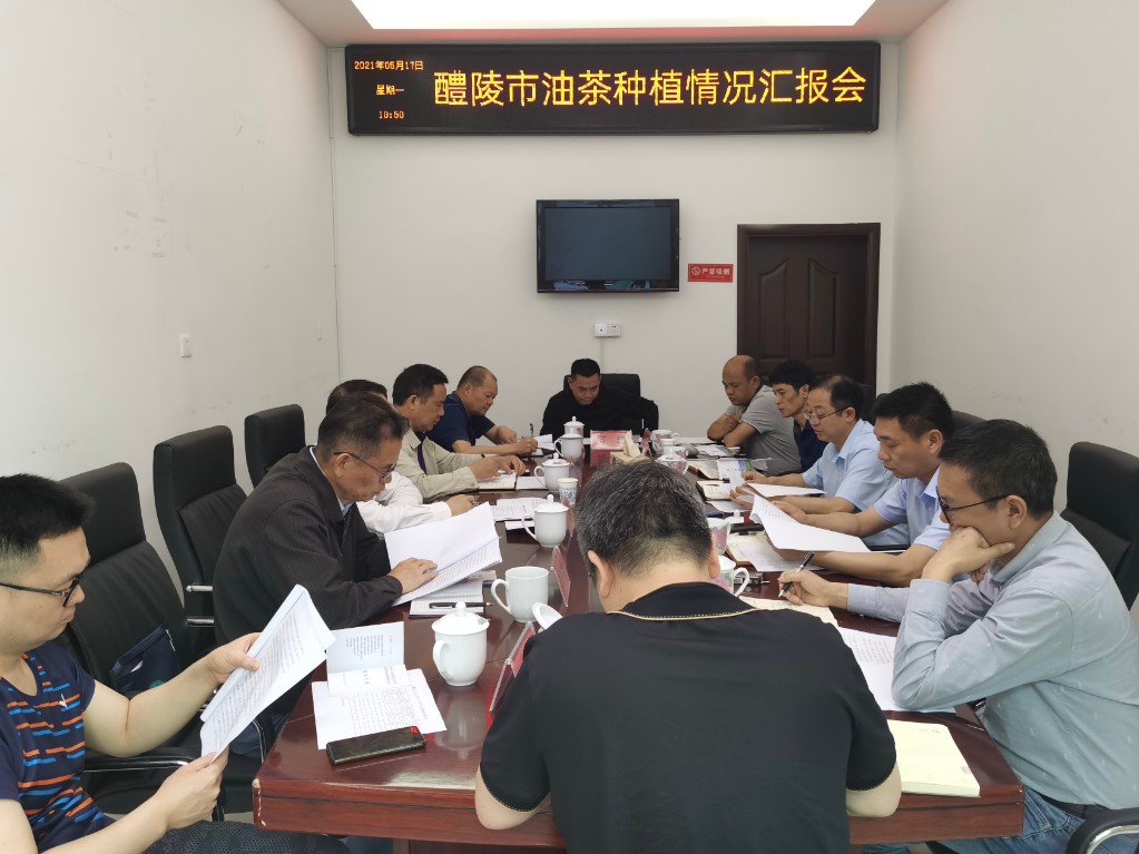 调研组一行通过听取汇报、查阅资料、踏勘现场、座谈交流等方式对醴陵市油茶种植情况进行了详细的调研和指导。陈佳从油茶发展现状、2018-2020年油茶种植情况、当前油茶种植存在的问题和建议等四个方面汇报了醴陵市油茶产业发展情况。陈立耀从油茶种植技术和油茶加工产业两个大方面阐述了当前油茶产业发展面临的问题。