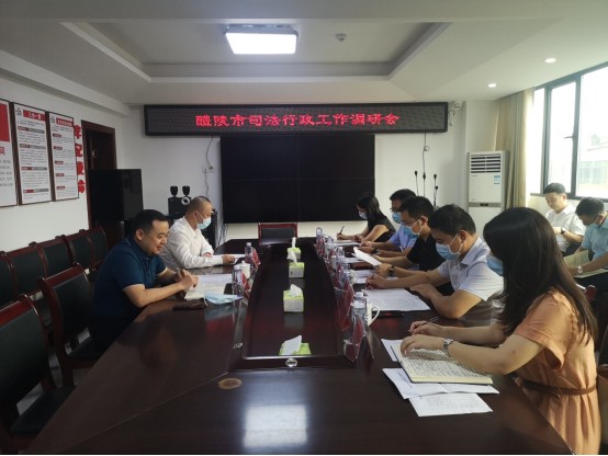 8月13日下午,醴陵市委副书记、市委政法委书记阳建一行到市司法局调研。市委办、政法委相关负责人参加调研,市司法局领导班子成员参加座谈。