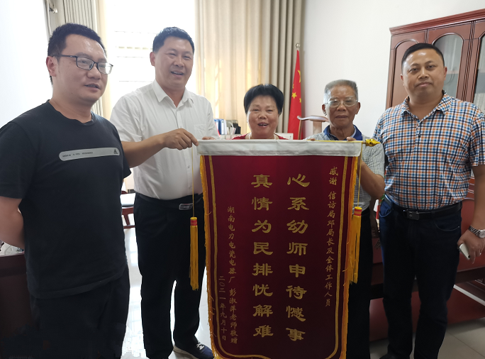 “太感谢你们了,帮我解决了一桩烦心事!”8月30日下午,湖南电力电瓷电器厂原退休幼师彭淑萍将一面写着“心系幼师申待憾事,真情为民排忧解难”的锦旗送到市信访局,表达她的感激之情。