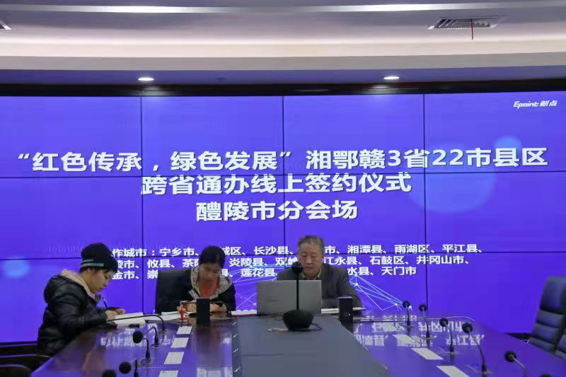 12月16日上午,醴陵市行政审批服务局与湘鄂赣3省21市县区政务服务部门以“屏对屏”的方式,顺利完成“红色传承、绿色发展”湘鄂赣3省22市县区“跨省通办”线上签约。
