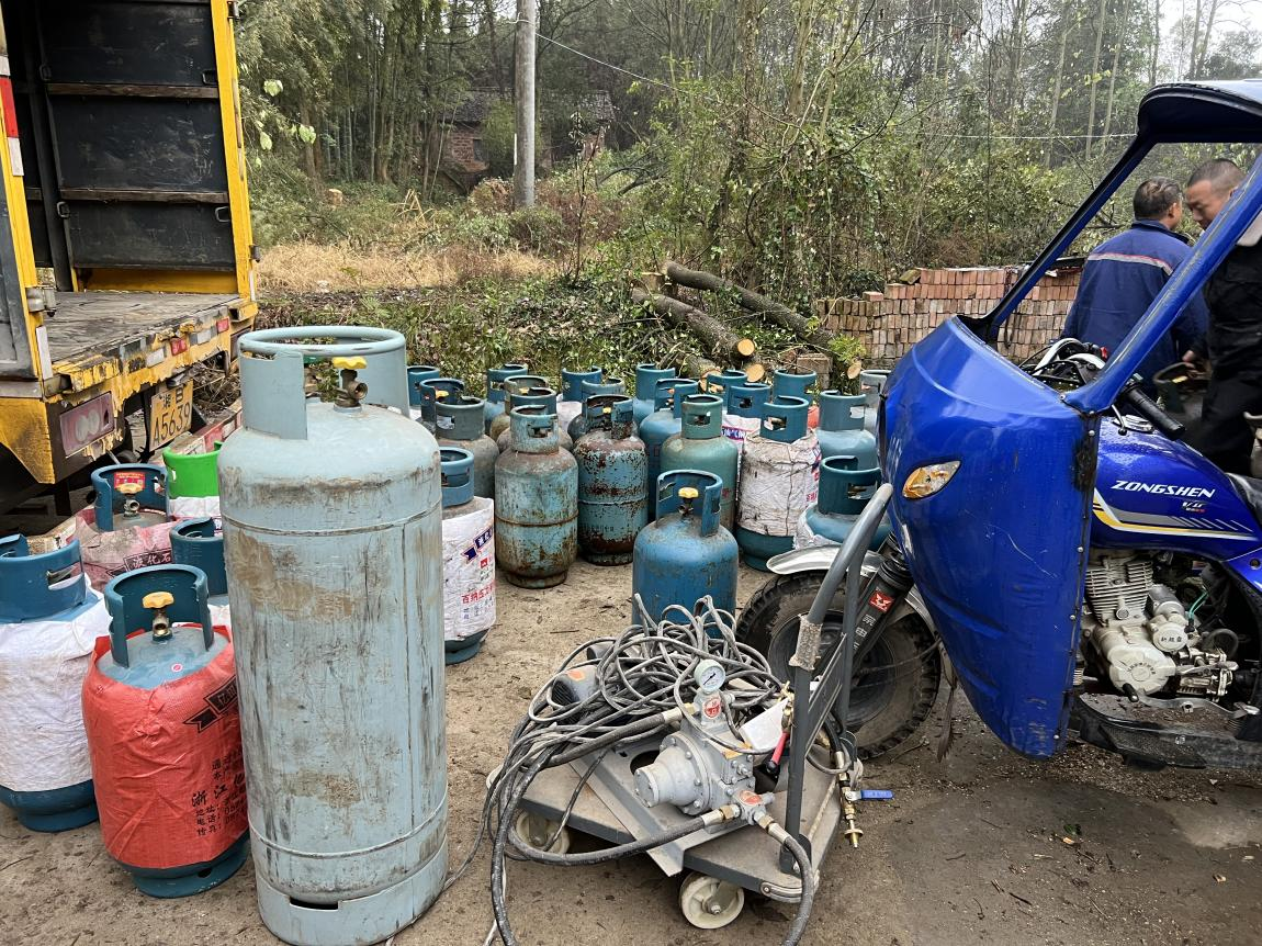 此次行动通过基层干部的线索摸排,对船湾镇、沈潭镇非法燃气网点采取“打非治违”突击行动,共查处非法经营储存液化气窝点3处,收缴大小钢瓶100余个、充气泵4台、充装枪9把。通过此次联合执法,对非法燃气窝点起到了极大的震慑作用,有效保障了人民生命财产安全。