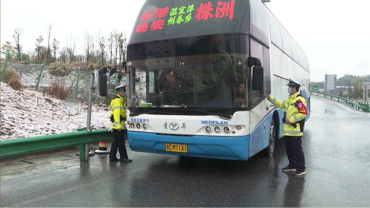 在醴陵东高速收费站,高速交警正在对途经的“两客一危”车辆进行交通管制,对即将驶入醴陵东、醴陵北、枫林、醴陵经开区、醴陵西等收费站的“两客一危”车辆司机进行劝离,并在路面加强巡逻,疏导已经驶入的该类型车辆尽快驶离,避免交通安全事故发生。