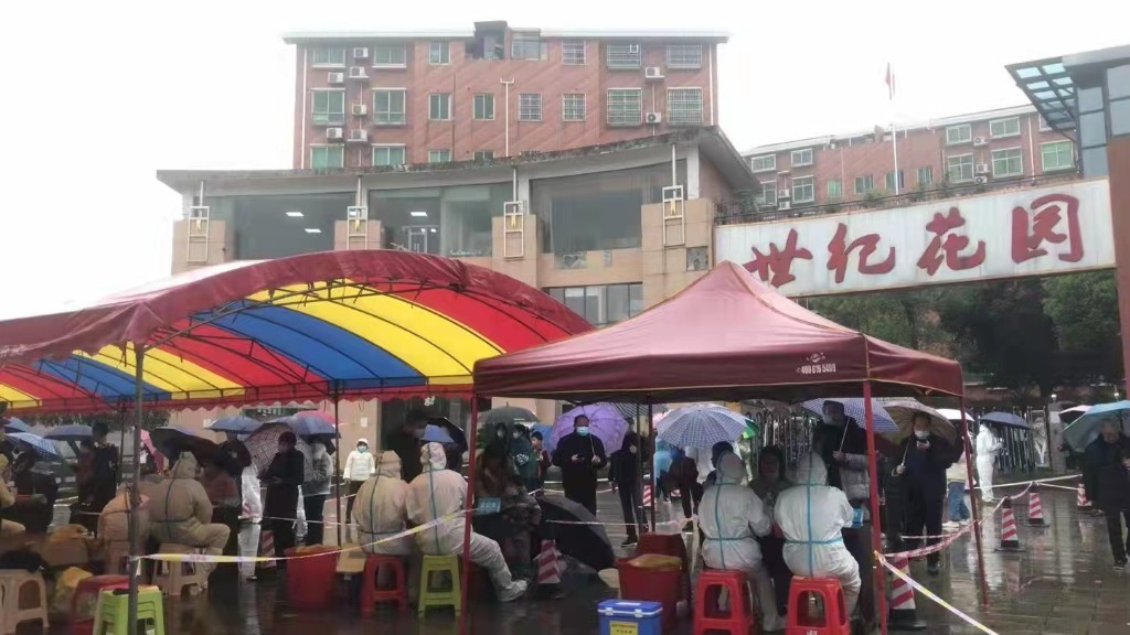 本次实战演练共设置采样点43个。演练开始,市住房保障中心11名抗疫志愿者和28名党员、干部职工,不顾春寒料峭,按照既定预案迅速行动,顶风冒雨,第一时间奔赴盛世华庭、世纪花园、星海明筑、国瓷新城、旗滨公园里等18个物业小区检测点,全程参与核酸检测工作。
