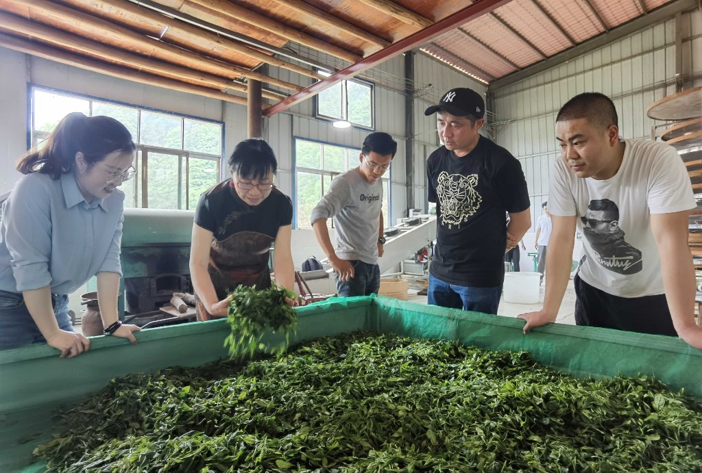 (技术人员正在指导红茶鲜叶萎凋加工工艺)