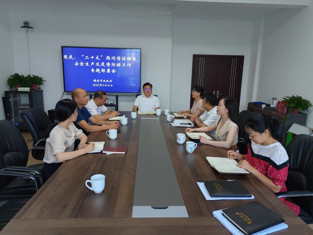 全面加强组织领导,层层压实安全责任。9月中下旬以来,市民政局班子成员深入学习领会习近平总书记关于安全生产工作的重要论述和重要指示精神,强化领导干部牢固树立“人民至上、生命至上”的安全发展理念。深入研究民政领域安全工作现状,专门出台《党的二十大期间民政系统安全生产、信访维稳工作方案》《关于全面加强民政服务机构森林防灭火工作的紧急通知》,成立民政系统安全维稳工作领导小组和应急抢险小分队,进一步压实局领导班子成员、中层干部、二级机构负责人工作责任,全面明确安全生产和疫情防控工作重点。同时要求纪检监察组加强对安全生产工作的督查,确保压力传导到位。