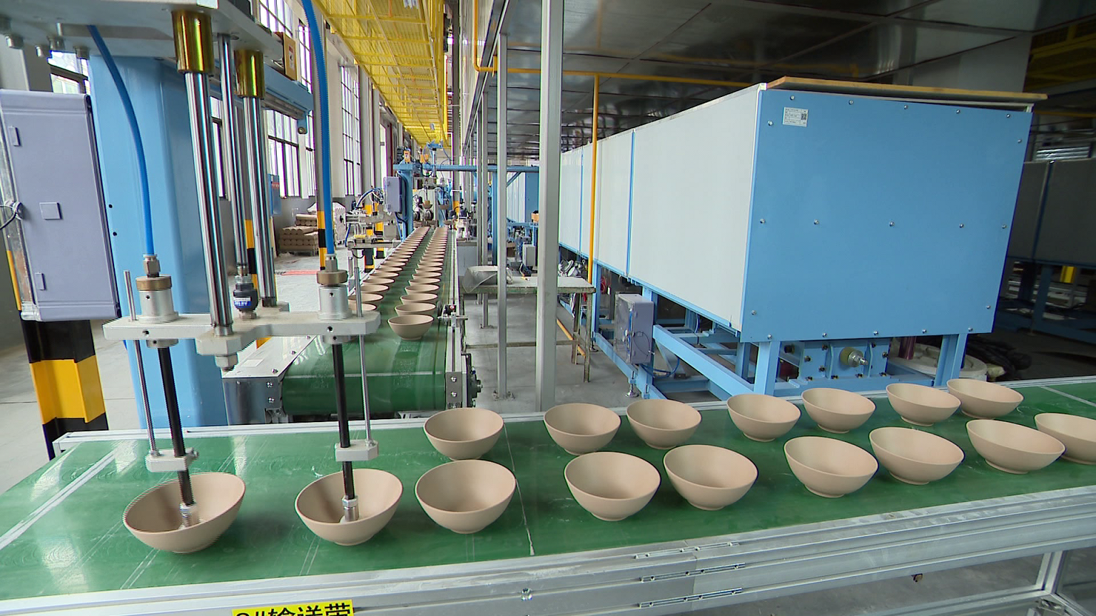 华联溢百利瓷业成立于2004年,主营日用陶瓷和特种陶瓷产品生产、销售,以及陶瓷进出口贸易等。在企业的这处自动化生产车间内,工人们只要将瓷泥柱搬上原料台,自动滚压线、釉坯生产线立即开足马力生产。生产线的另一端,叉车会将包装好的产品快速运走。