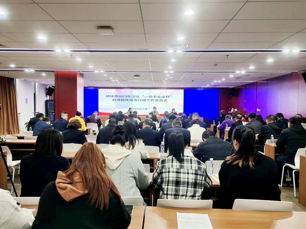为进一步提升企业、群众办事的体验感和便利度,优化审批服务质效,3月28日上午,醴陵市2023年深化“一把手走流程”解难题优服务行动工作推进会在市行政审批局418会议室召开。副市长何彩凤出席会议并讲话,市行政审批局党组书记、局长吴远香主持,全市40余家相关职能部门的负责人参加会议。