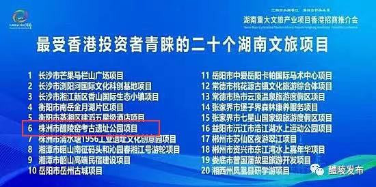 据了解,会上,全省共推出363个湖南文旅招商项目,总投资3388亿元,投融资需求2464亿元。现场,由香港企业代表和湖南文旅企业代表联合发起成立了“港湘招商合作联盟”,并发布了最受香港投资者青睐的二十个湖南文旅产业项目,我市醴陵窑考古遗址公园项目上榜。