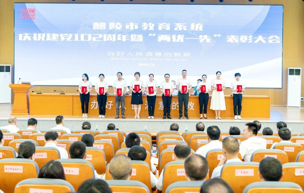 7月4日,醴陵市教育系统召开庆祝建党102周年暨“两优一先”表彰大会。