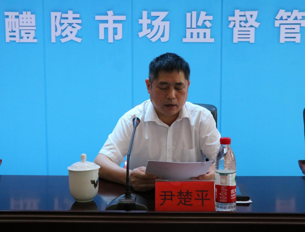 会议由株洲市市场监管局二级调研员陈凯主持,株洲市食安办副主任、株洲市市场监管局副局长尹楚平,株洲市食安办副主任、株洲市农业农村局一级调研员吴飞鹏,醴陵市副市长何彩凤,醴陵市食安办主任、市市场监管局局长丁武华出席会议。