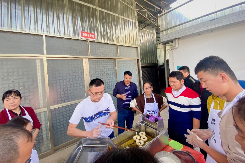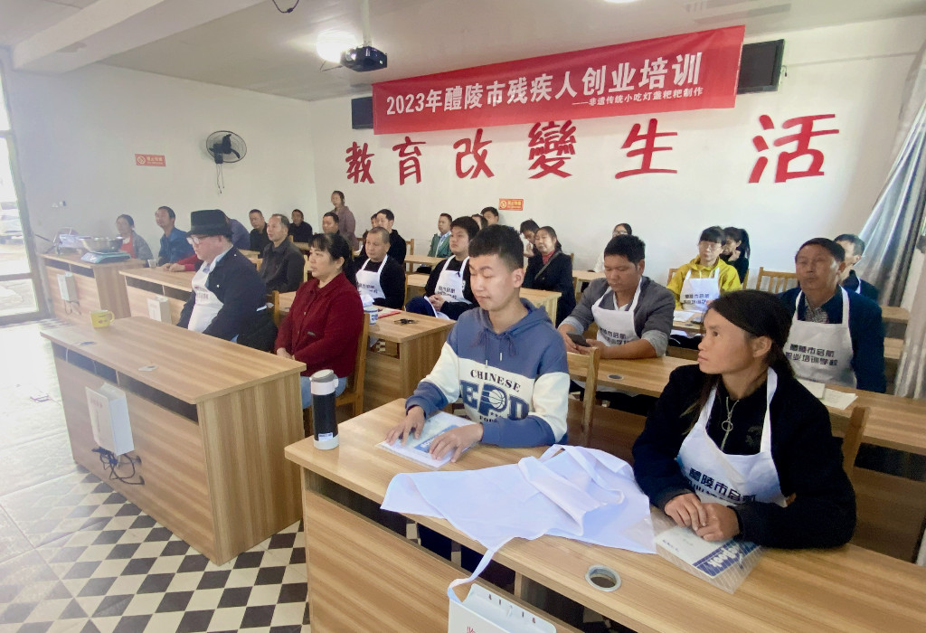 为推进残疾人创业,近日,醴陵市残联在启航职业培训学校开展了为期9天的创业培训,这次培训的内容为“非遗传统小吃灯盏粑粑制作”。