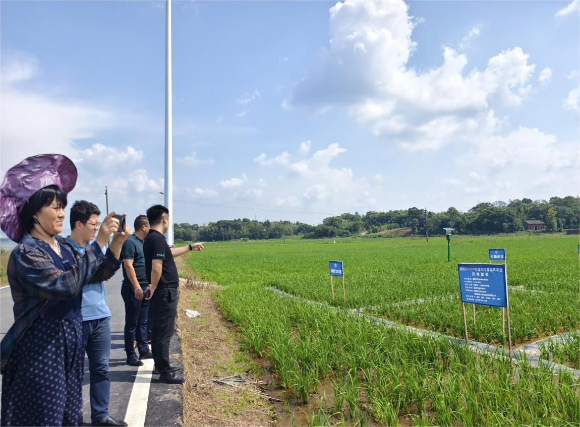 调研组来到泗汾镇陈家垅村“南方区域施肥与耕地肥力提升集成工程”千亩示范片实地调研,重点了解晚稻大面积示范片应用粪肥还田、优化施肥对比示范和有机肥替代化肥小区试验等科研活动的进展情况。