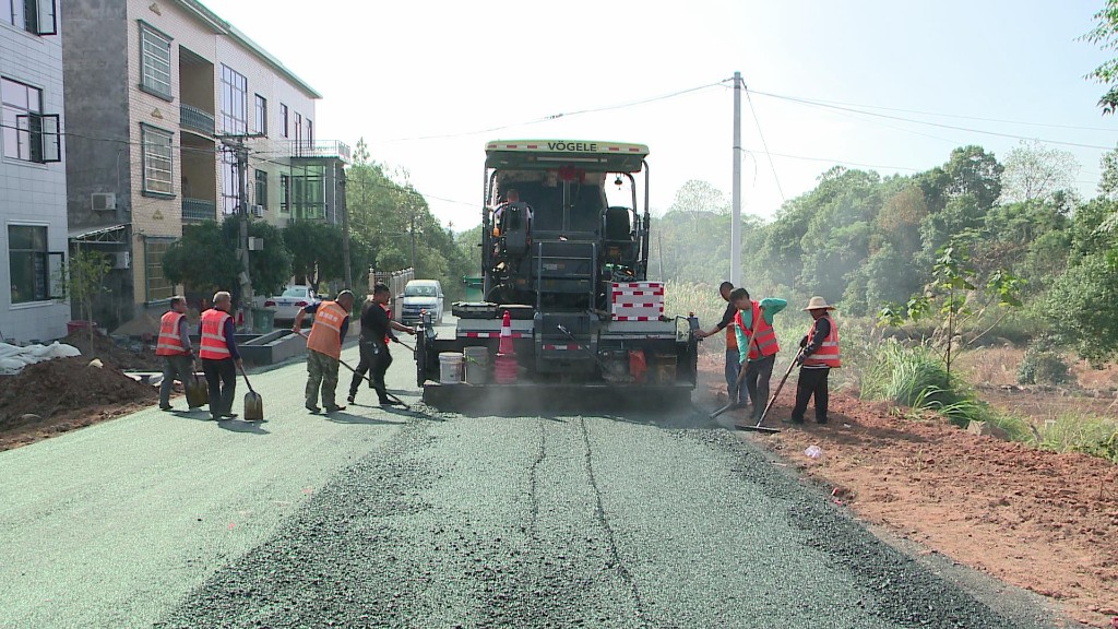 东沈线道路提质改造项目途经沈潭镇三星里村、沈潭社区、夏星社区、鳌仙村、美田桥村等村、社区,分两个路段进行沥青摊铺施工,全长近11公里,将铺设7厘米厚的沥青,目前已完成马坡里集镇到鳌仙村部分路段的铺设任务。