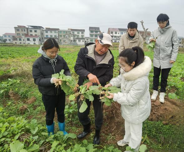 比赛结束后,全体参赛人员来油菜田,现场听取高级农艺师讲解油菜根肿病的发病机理、症状表现和防治策略,并动手查找病株。