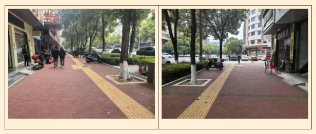 二、美观实用品质提升:新铺设的透水砖以红色为主基调,搭配明黄色触感盲道砖,既形成清晰视觉引导,又保障了视障人士安全通行,与周边环境相得益彰。同时,透水砖的高强度特性也大大延长了道路使用寿命,减少了后期的维护成本。