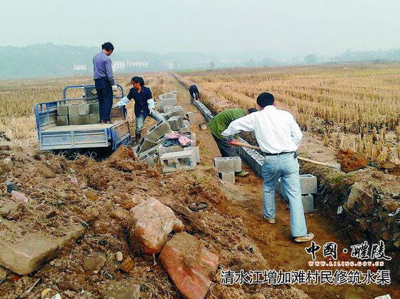 清水江乡增加滩村为彻底解决村上农田灌溉缺水的问题,在新修一条1400米的灌溉水渠。记者在现场看到,装载石砖的车辆在不停作业,村民们举锄挥锹,对水利渠道进行清淤扩容、修补加固,劳动热情异常高涨。村民刘新龙告诉记者,在今年的干旱中,他们组上有很多农田受灾。以前他们就是靠一台抽水机灌溉,而今年罕见的干旱使得组上40多亩农田失收。