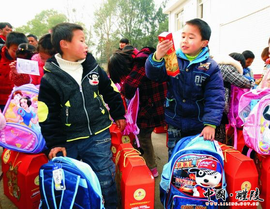 在新阳乡荷塘中心小学,志愿者给孩子们送上了精心挑选的“大礼包”。打开新书包,孩子们发现里面装满崭新的文具和其他新年礼物,脸上露出了欢快的笑容。“企业正因为有了社会的支持才能发展起来,我们应该更多地负起社会责任,希望更多的爱心人士加入我们。”活动结束时,企业家张辉如此说道。