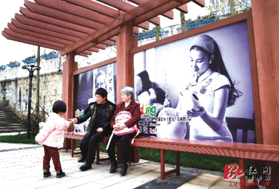图为:3月16日,市民在新街口小游园新设置的瓷博会宣传栏前休闲。