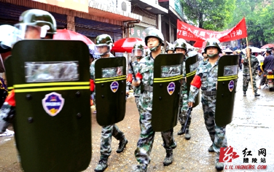 日前,石亭镇综治办联合镇民兵预备役、派出所组建一支治安巡逻队。统一着装,佩戴袖章,手握盾牌和警棍的巡逻队,围绕集镇和村组进行专项巡逻,彰显了该镇对“打非治违”、“打恶治乱治霸”的明显态度和维护经济社会稳定的坚定决心。