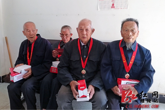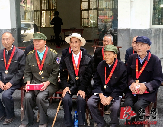 受到“功臣关爱·醴陵英雄”捐助的抗战老兵们开心合影