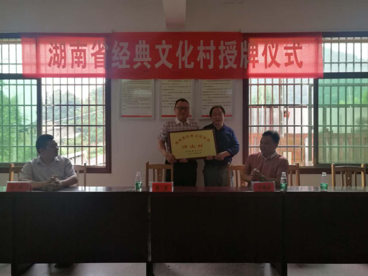 6月20日上午10:00,醴陵市沩山镇沩山村举行“湖南省经典文化村”授牌仪式。醴陵市文体广新局局长盛勇、沩山镇党委书记苏凯、镇党委副书记、镇长钟敏、醴陵窑管理所所长刘峰、镇机关干部代表、沩山村支村两委、驻沩山村株洲市扶贫工作队及醴陵市各扶贫后盾单位代表参加了此次授牌仪式。仪式由沩山镇镇长钟敏主持。据悉,此次沩山村荣获“湖南省经典文化村”光荣称号是继2010年沩山村被湖南省评为第三批“省级历史文化名村”之后又一光荣的省级荣誉。