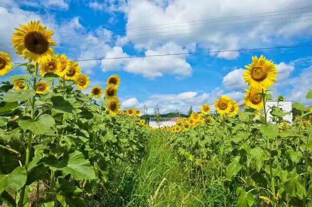 在篮球赛正如火如荼进行时,汆溪村还举办了盛大的“葵花节”,百亩向日葵以无比热情的“笑脸”迎接各方的游客。大家白天赏花赏景,观看民俗表演,晚上吃完农家特色餐后投入到热火朝天的篮球赛场上,实现丰富多彩的精神文化生活。