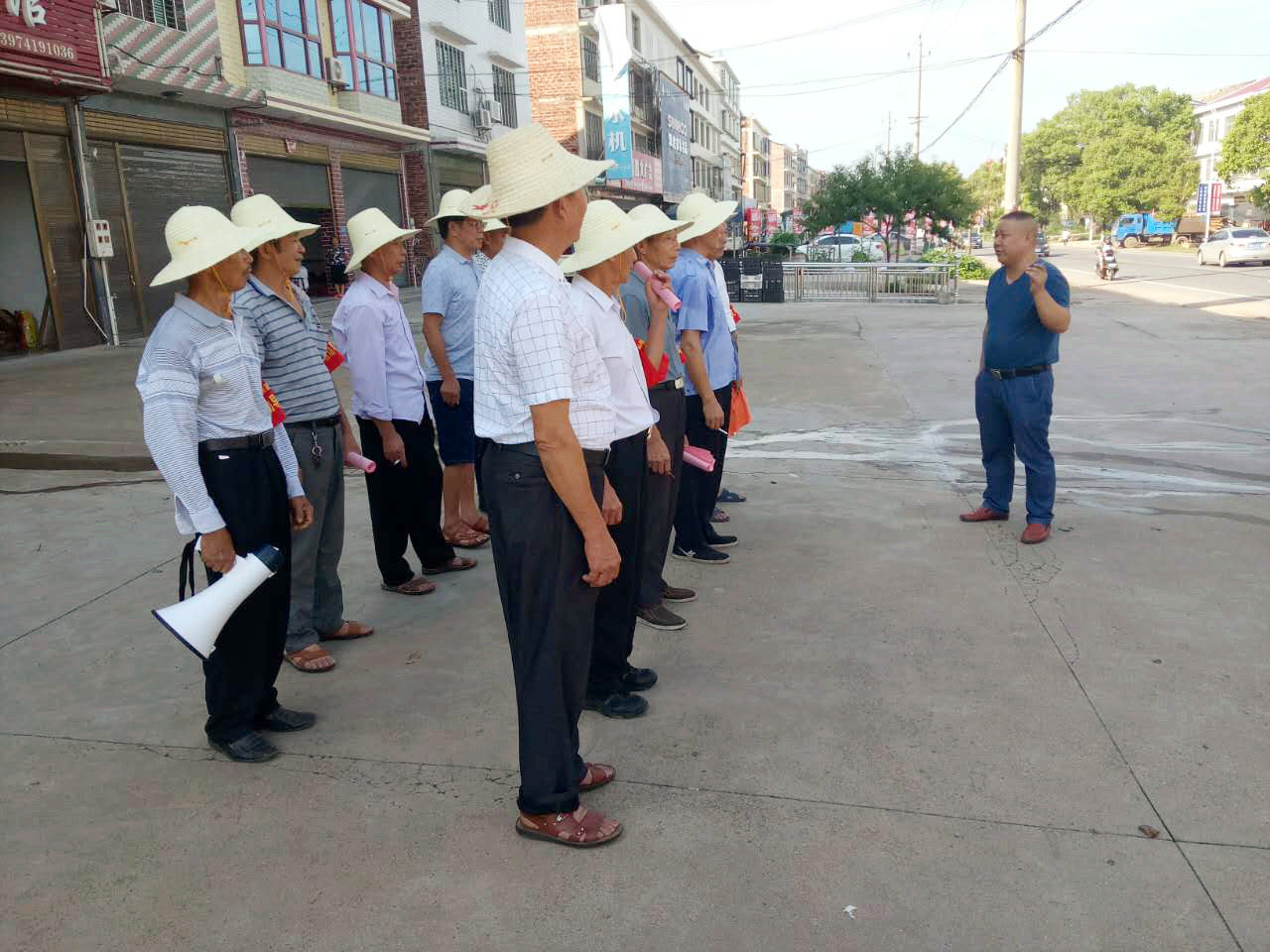 迎着清晨的阳光,退休教师汤其雪带着10人文明劝导队来到106国道,开始一天的文明劝导。“老板娘,你把门口的塑料瓶收整齐一下,这样摆着太不美观了。”“停一下,让小朋友先过!”文明劝导队员们分工合作,一组沿着106国道劝导沿线“六乱”,一组在路口指挥交通。没有办公室里的空调和清茶,只有长时间的日晒和无数次的劝导。