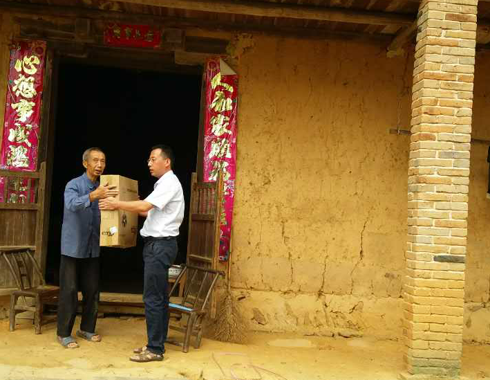 贫困户谭贤得,今年72岁,前段时间因脑梗塞住院14天,考虑到其家人身体不便,吴泾泽便主动到医院、村委为其开具相关证明,帮助报销医疗费用3160元。又听闻谭贤得、冯球生两位贫困户为今年的蜂蜜和土鸡蛋销售犯愁,吴泾泽主动联系总行,通过内部员工购买和外部销售蜂蜜55斤共计2700余元,销售土鸡和土鸡蛋500余元,及时解决了销售难题。
