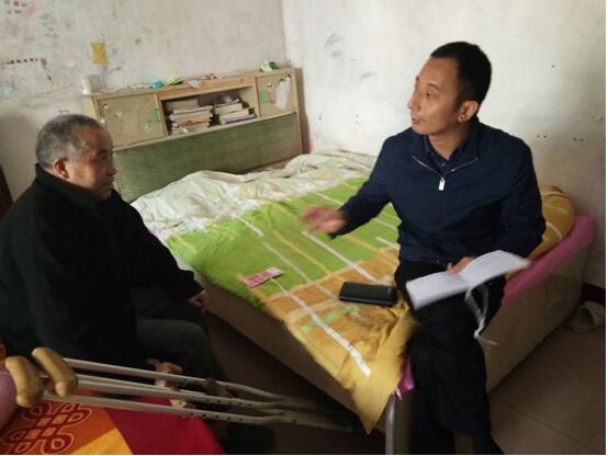 “自从儿子去世后,家里就只有儿媳一个劳动力,既要照顾两个老人,下面还有两个孩子在读书,儿媳在镇上做小工,每月500来块钱收入,两个小孩读小学,每学期1000块的助学金”黄绍中无奈的诉说。“根据你们家现在的情况,符合兜底政策,我会同村上反映,今年把你们家纳入到兜底户,您放宽心,国家这么好的政策,一定会帮你们家度过难关的”。