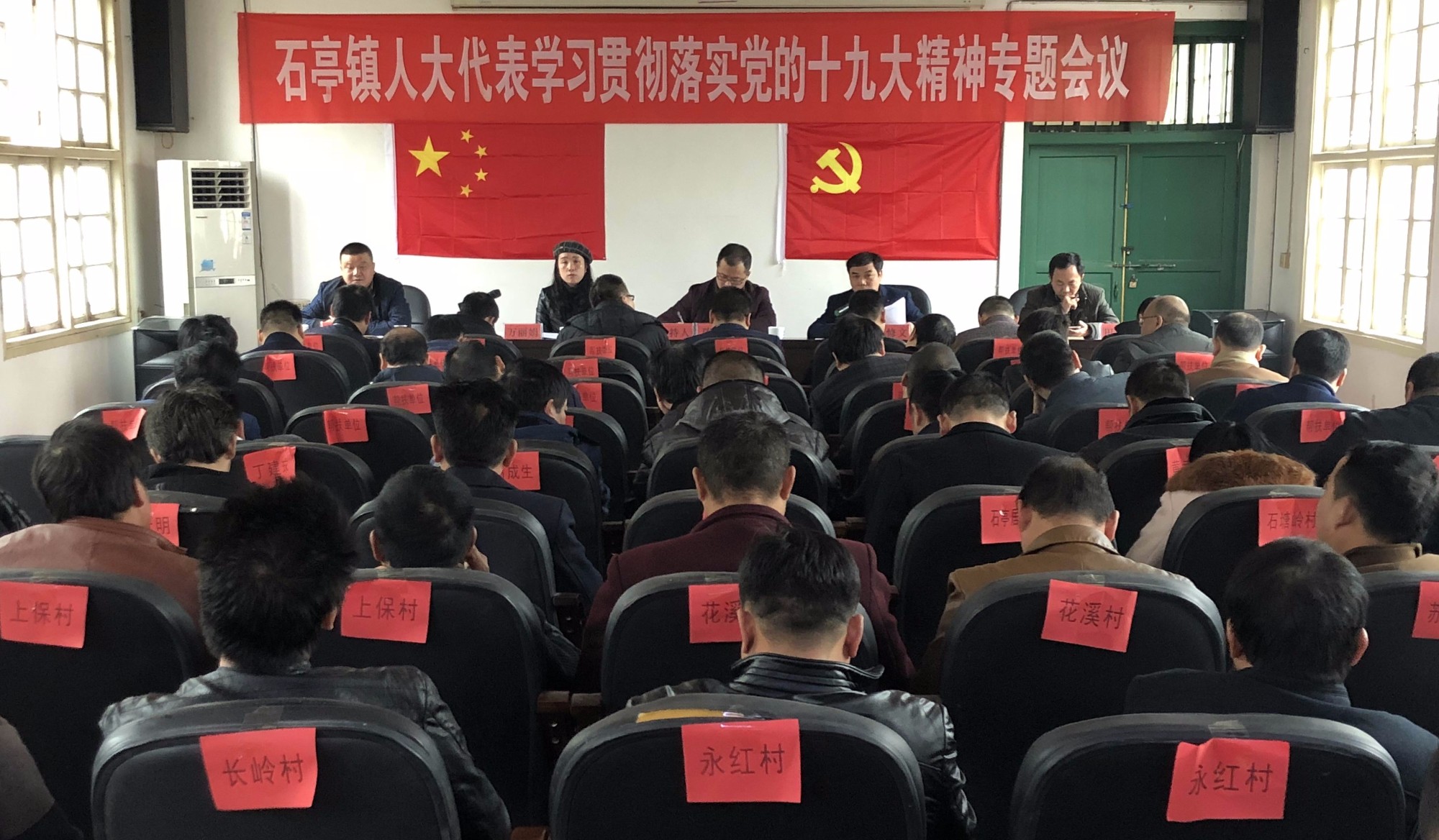 11月22日,石亭镇召开人大代表会议,专题学习贯彻落实党的十九大精神,镇人大主席万丽娟主持会议,镇党委书记陈林作重要讲话。