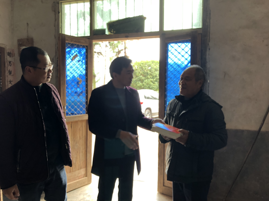 在贫困户家中,廖胜云书记耐心倾听他们心声,向贫困户宣传“精准扶贫”教育助学、医疗救助、危房改造等惠民扶贫政策,解读了党的十九大会议精神,并送给每一户贫困户一本《党的十九大报告辅导读本》。通过拉家常的方式嘘寒问暖,了解近期家庭生活、生产收入情况和困难要求等,同时给他们送去牛奶和食用油等慰问品。