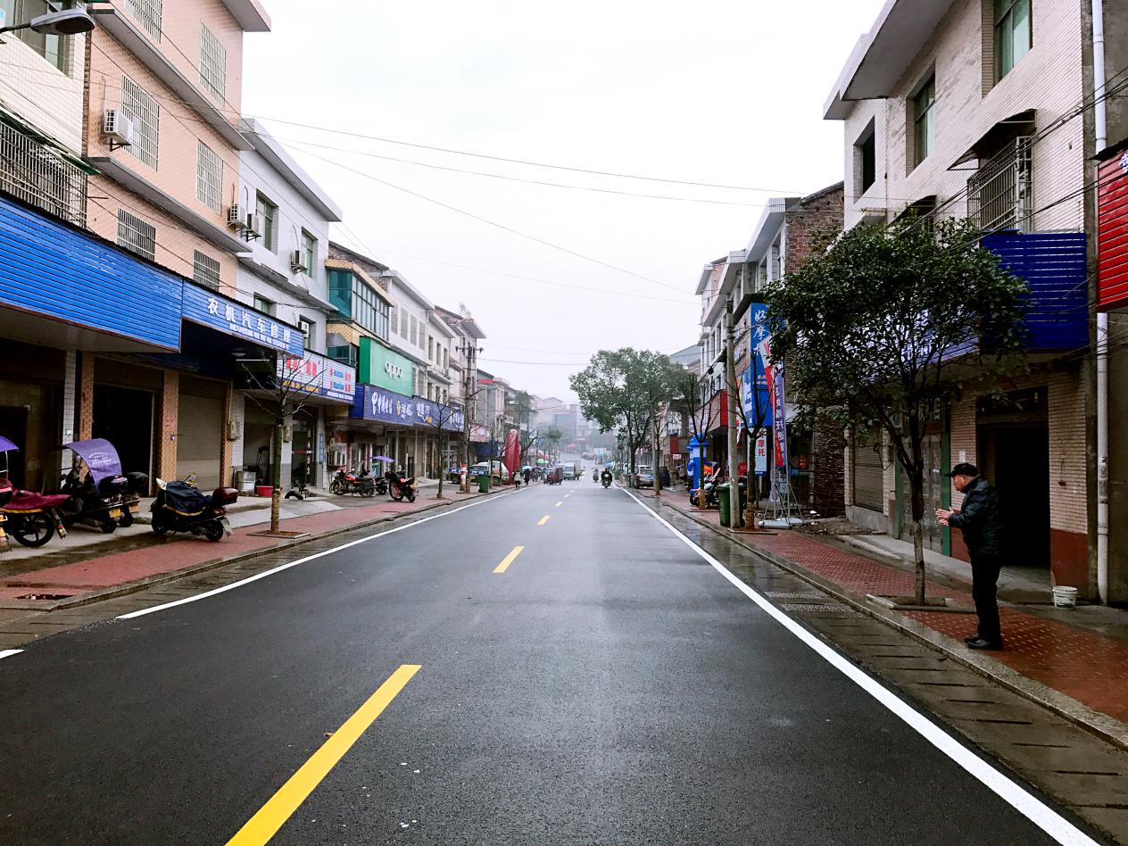 铺着红砖的人行道、干净平整的改性沥青路面、整齐划一的商店招牌,经过近3个月的紧张施工,在2017年的最后几天,一个崭新的东富镇集镇呈现在大家眼前。