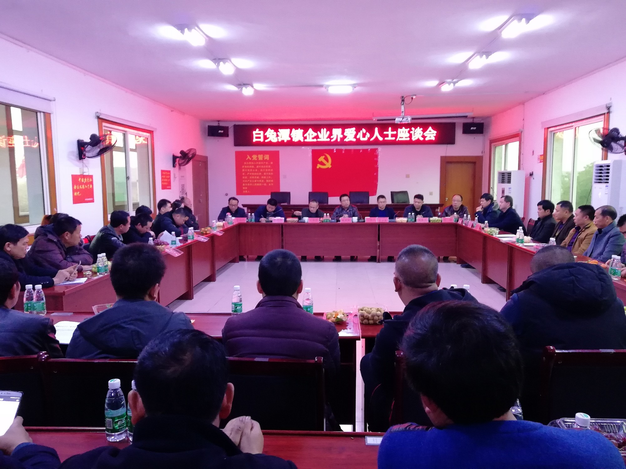 1月24日,白兔潭镇党委、政府组织召开了“白兔潭镇企业届爱心人士座谈会”,其中荷田敬老院、栎塘敬老院、白兔潭镇中心联校和市第五中学代表参加座谈,45名民营企业家参加献爱心,共筹集善款219900元。据了解,本次座谈会主要为改善敬老院老人生活条件和提高乡村教师福利待遇,旨在扩大精准扶贫影响范围,改善该镇社会公益和教育事业环境,享受白兔潭镇新型城镇化发展成果。