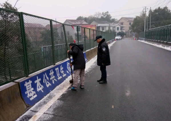 道路上,该镇加强镇村联动。镇政府机关干部和村干部明确分工,加班加点,在3条村级重要路段撒盐除冰,寒冷了自己,但是也温暖了行人。积极引导交通,在危险路段设置道路警示标志,播放冰雪天气安全出行广播,形成合力,共同维护交通安全。