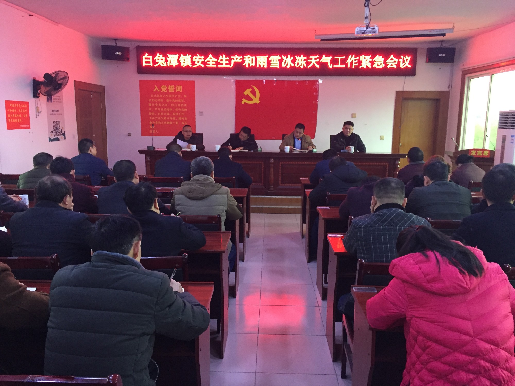 1月26日,白兔潭镇召开了应对低温雨雪天气暨安全生产工作紧急会议,启动工作预案、明确工作职责,形成了“统一指挥、部门分工”的应急机制。同时,充分发挥网络宣传舆论导向作用,通过微信和政府网站向群众发布低温雨雪天气的防控知识,切实提升群众自我防范意识。