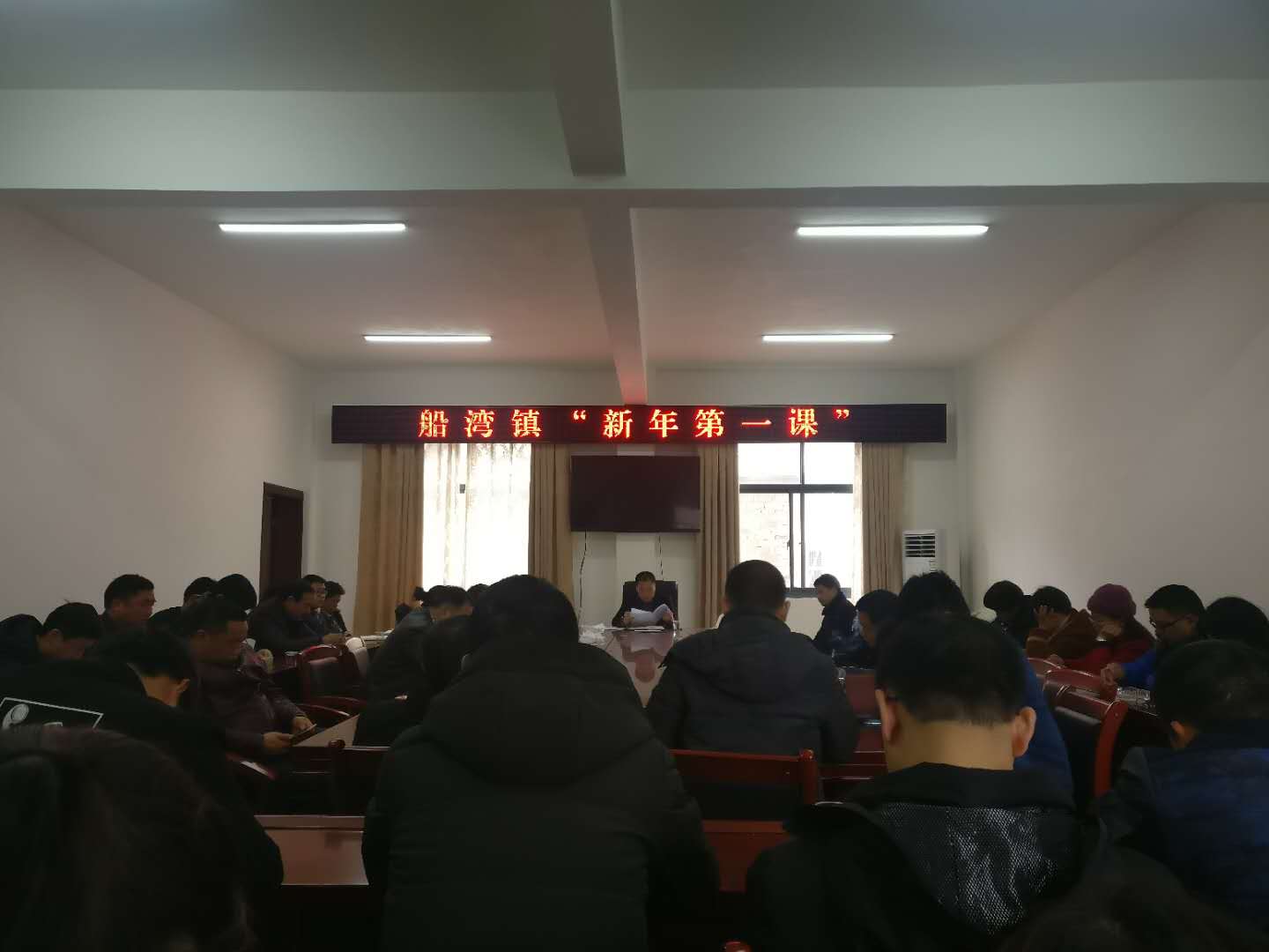 2月22日,船湾镇组织全体机关干部围绕"坚定信念,逐梦前行"为主题上了"新年第一课"。船湾镇党委书记彭庆纪紧密围绕习近平总书记倡导的工作精神,为全体机关干部指明了方向,敲醒了警钟。