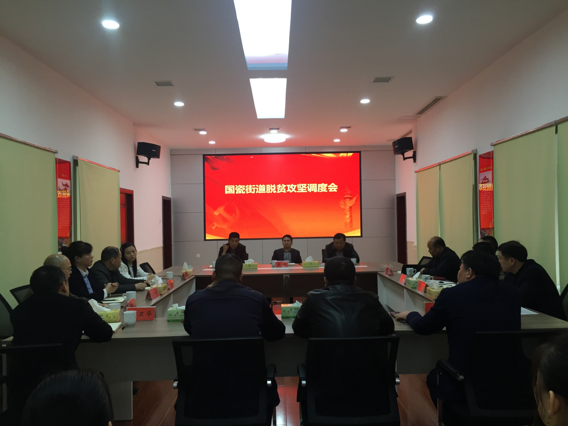 3月5日上午,醴陵市经开区党工委书记黎平前往国瓷街道调度脱贫攻坚工作。街道党工委书记赖洪主持会议,办事处全体班子成员,经开区、交警队、园林局、灯饰所、改制办五个后盾单位扶贫工作负责人参会。