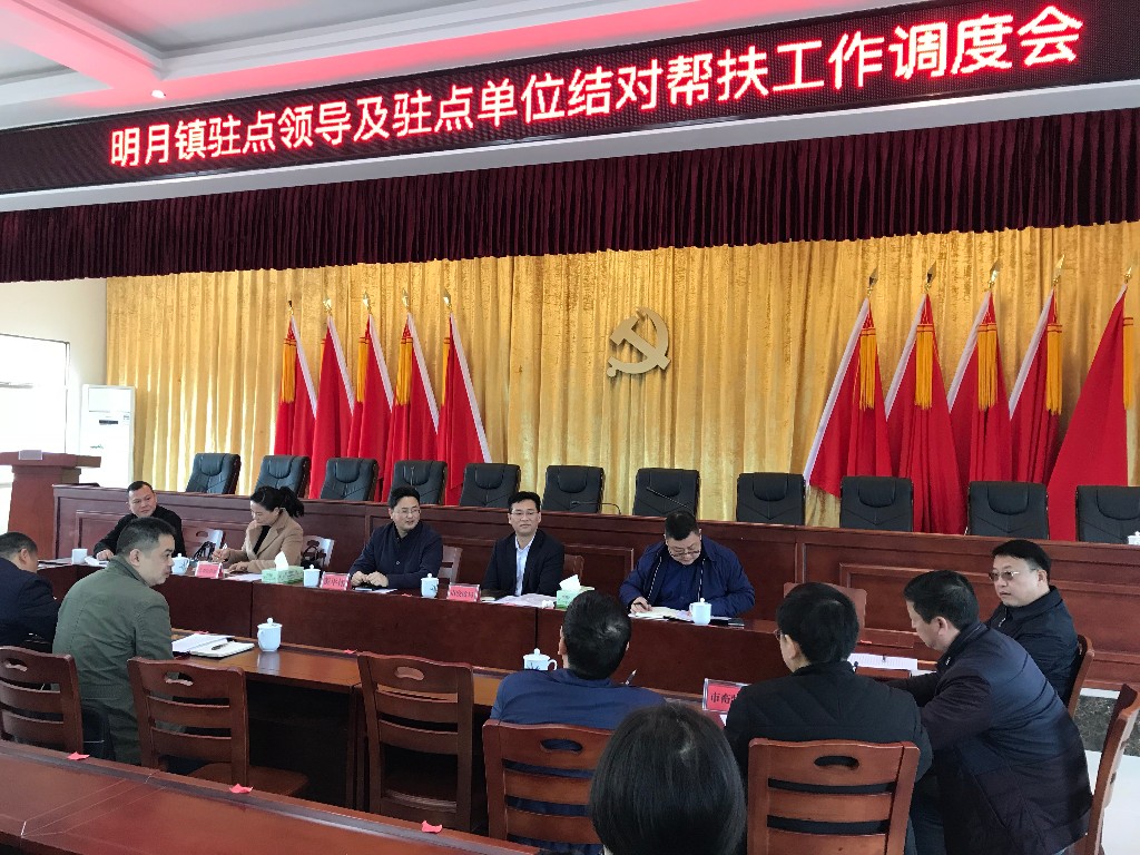 会议伊始,镇党委书记郭晖就明月镇基本情况作简要介绍,重点谈及了2017年明月镇税收、机关建设工作和2018年的“一村一品”、国土工作计划。各帮扶单位作表态发言,表示在2018年坚决贯彻市委、市政府决策部署,坚决履行党建帮扶职责,全力做好帮扶工作,协助明月镇将工作推上新台阶。