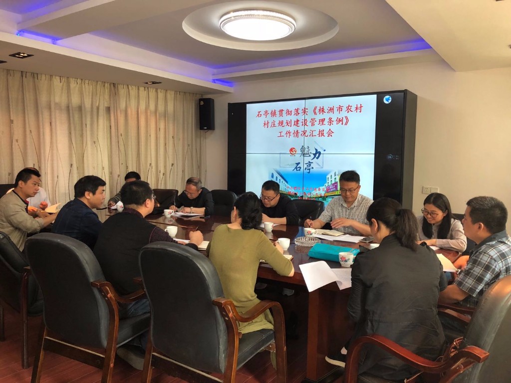 4月11日,市人大城环委督查组来石亭督查《株洲市农村村庄规划建设管理条例》贯彻实施情况。督查组一行实地查看了石亭镇规建委办公室设置情况和贯彻《条例》宣传栏,听取了石亭镇党委、政府关于贯彻《条例》工作情况汇报。