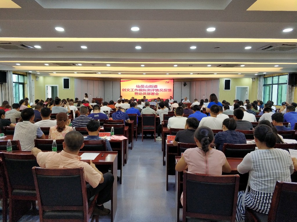 为认真落实市委、市政府创建省级文明城市工作要求,动员全街道上下进一步提高认识、统一思想、坚定信心、狠抓落实,7月12日下午,仙岳山街道召开创文工作模拟测评情况反馈暨动员部署大会。