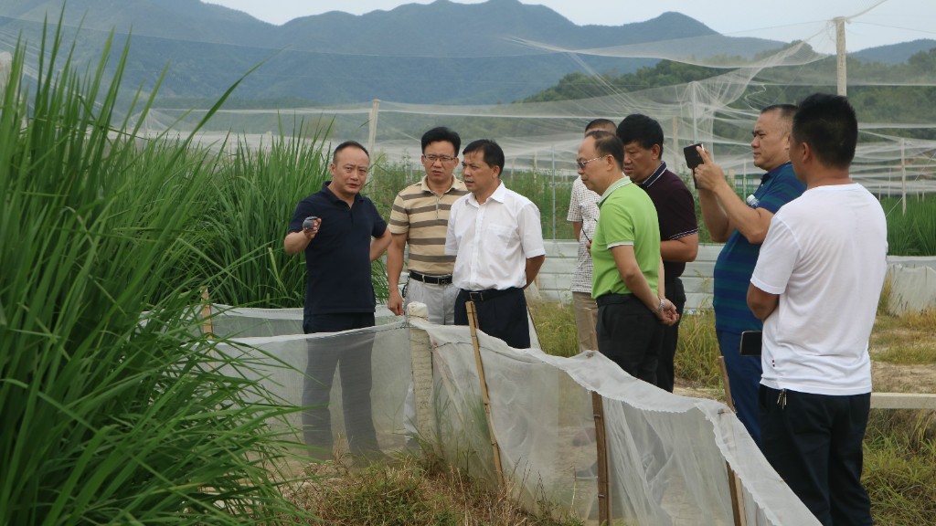在枫林镇隆兴坳村,刘春生一行参观了巨型稻立体种养基地。作为财政部农村综合改革试点项目之一,该村引进种植了300余亩由中国农业科学院亚热带植物研究所研发的“巨型水稻”(单株水稻高达2.2米),并采取“鱼稻共生”、“蛙稻共生”等模式,在稻田中养殖青蛙和鲑鱼,大幅度提高单位面积产值。稻花香里说丰年,听取蛙声一片。当得知该基地亩产值可高达四五万元时,刘春生竖起了大拇指。