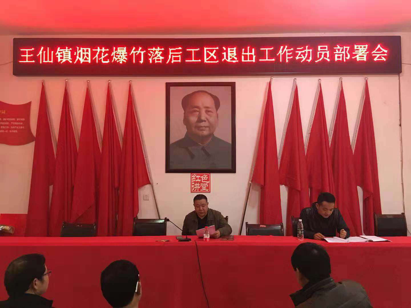 为加快烟花爆竹产业供给侧改革,引导落后烟花爆竹生产工区(以下简称落后工区)关闭退出和兼并改造提质,推动全市烟花爆竹产业安全健康发展,12月6日上午,王仙镇召开了全区烟花爆竹落后工区退出工作动员部署会,会议由副镇长黄先海主持,安监站全体成员、退出工区负责人等19人参加了会议。