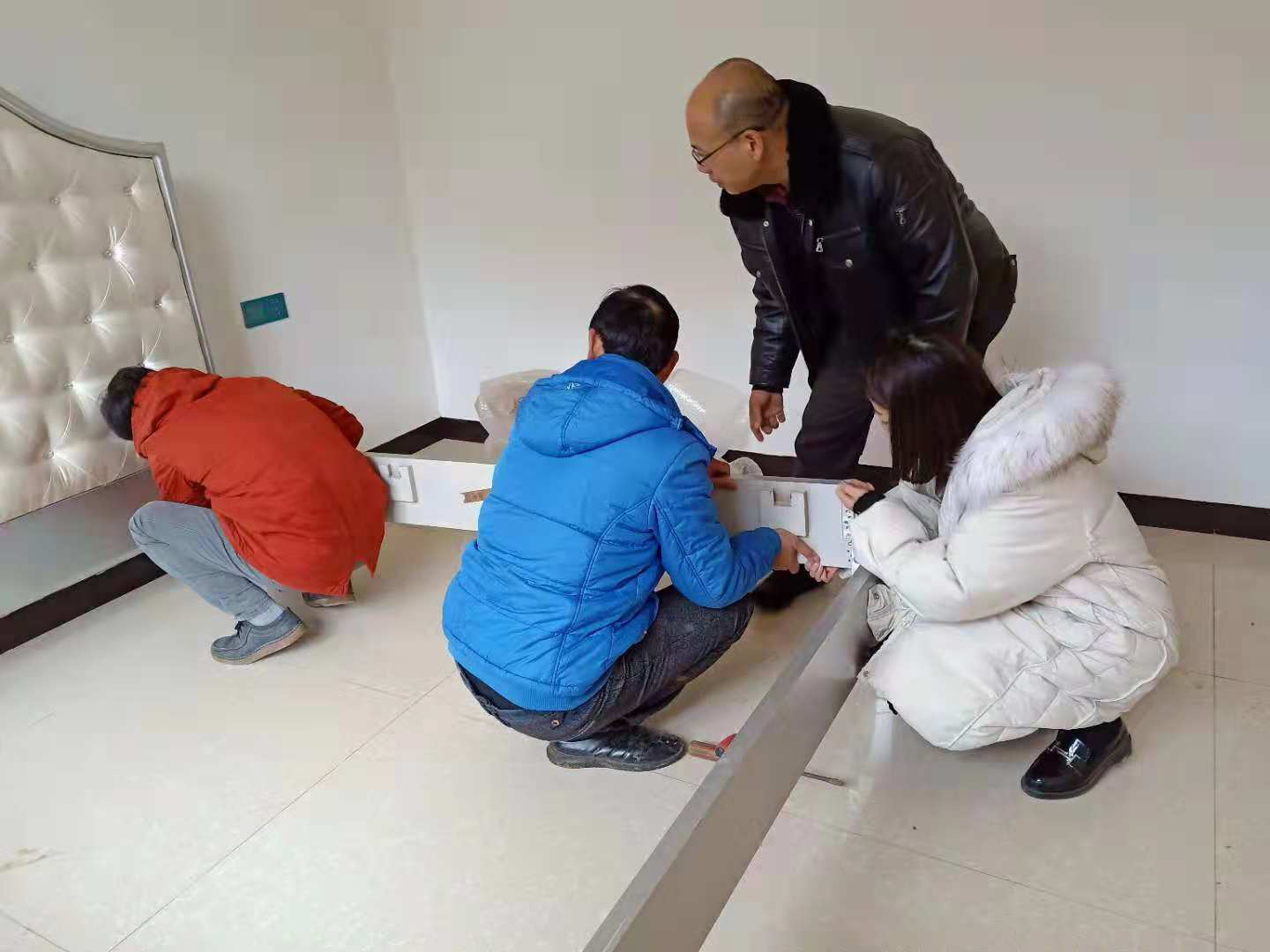 (为贫困户安装新床铺)