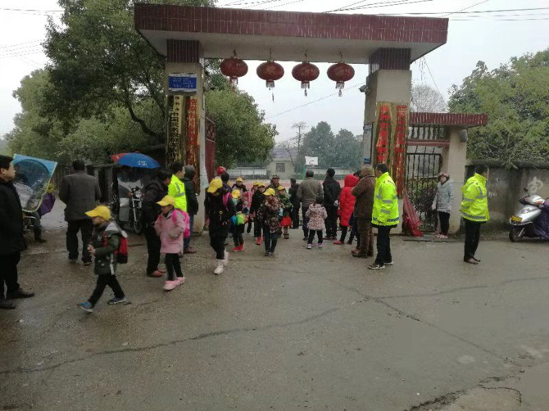 近日我市出现连续阴雨和低温天气,孙家湾镇爱心护学队员如往常一样,根据辖区各学校放学时间先后来到孙家湾中学、龙虎湾中心小学校门两侧站岗,维护放学高峰期现场秩序。